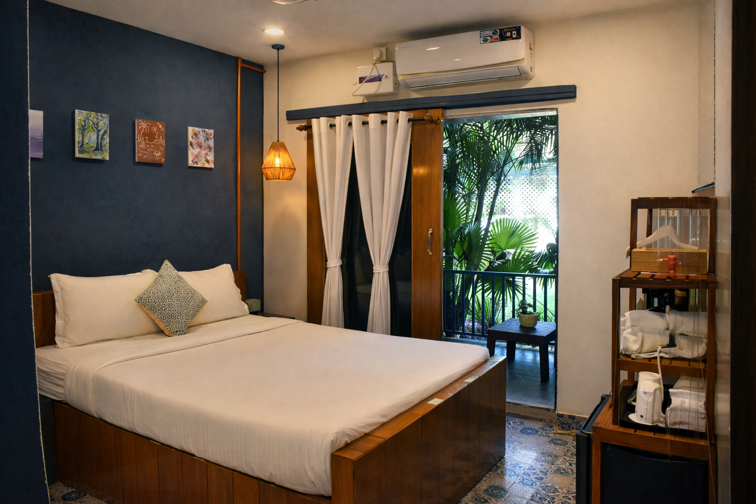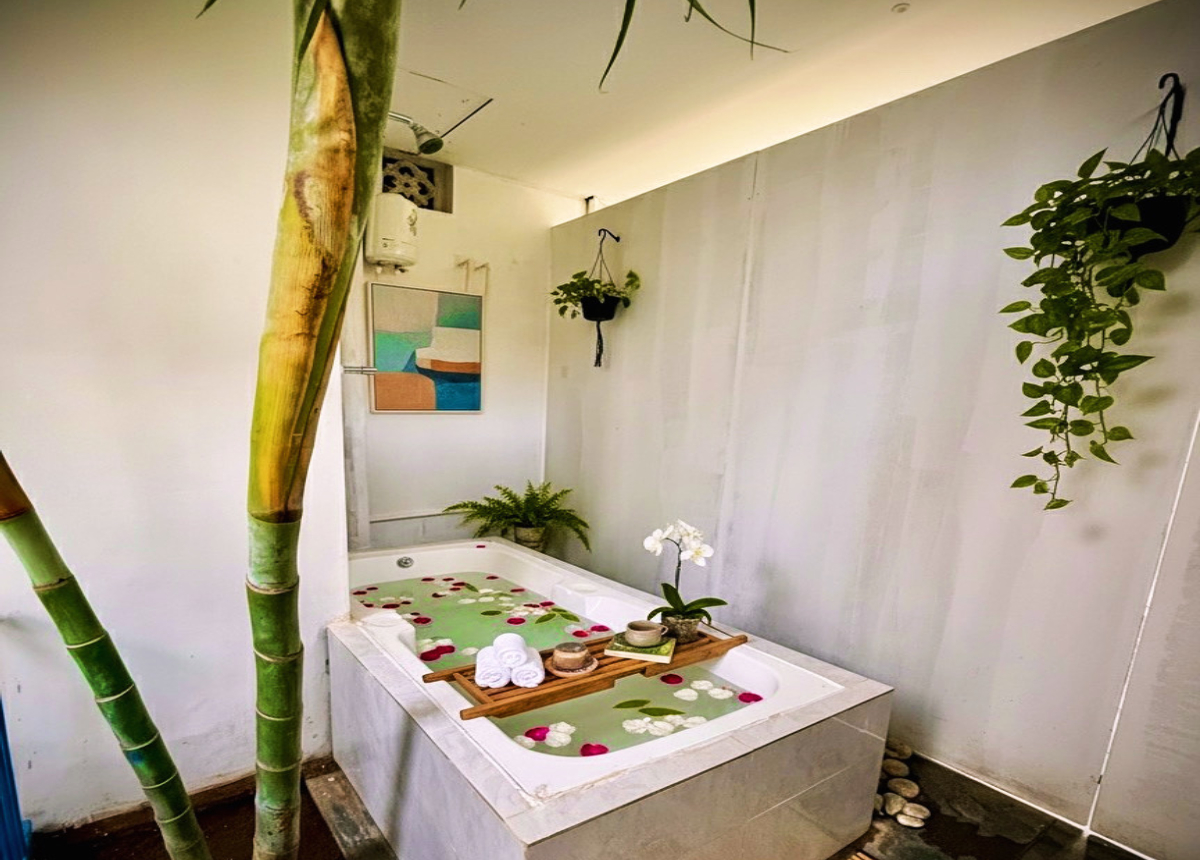 These bespoke retreats are designed for intimacy and tropical comfort, featuring a cozy queen bed and private patio access. Your unique bathing experience includes either an invigorating open-to-sky shower or an exclusive open-air bathtub, perfect for a deeply relaxing, romantic soak under the stars. The specific open-air feature will be allocated upon arrival, based on availability.